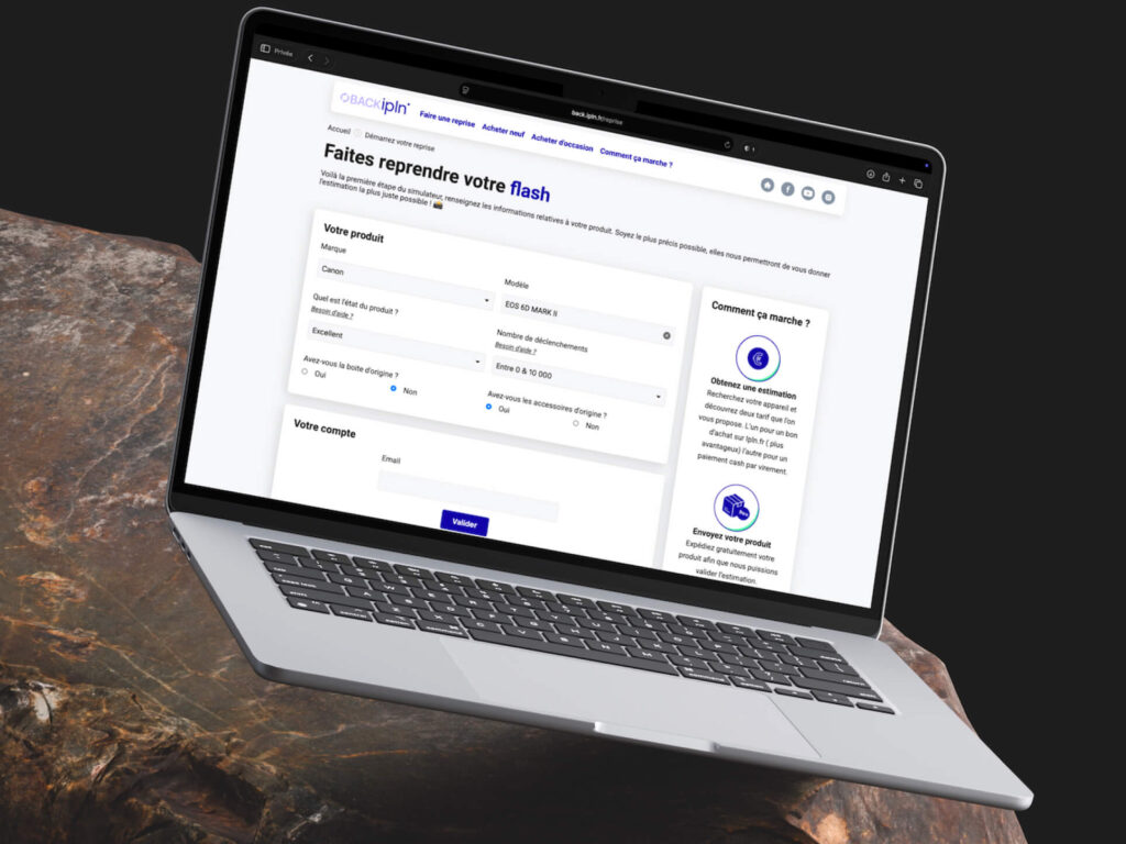 Le projet BACK IPLN est un service innovant de rachat de matériel photo et vidéo, destiné aux consommateurs souhaitant revendre leurs anciens équipements. Mintfull Agency a conçu et développé une plateforme web sous Symfony permettant aux utilisateurs de vendre leur matériel en toute simplicité. Ils ont le choix entre recevoir un bon d’achat valable sur le site e-commerce [IPLN.fr](/nos-projets/ipln) ou un virement bancaire. L’objectif de ce projet était de créer un tunnel de conversion optimisé, avec un espace client facile à utiliser et un back-office administrateur complet pour gérer chaque étape de la reprise, du début à la fin.